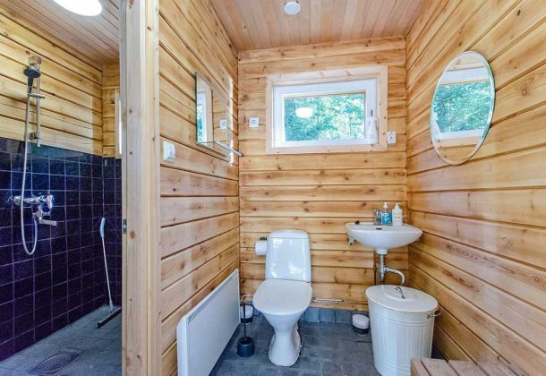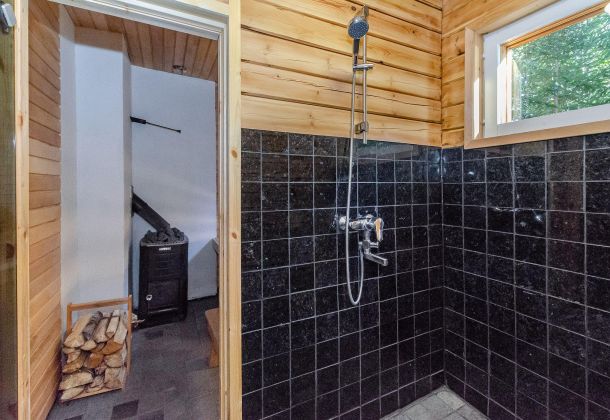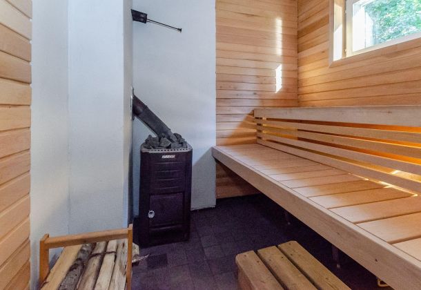 - Dressing room, bathroom/shower, wood-burning sauna
