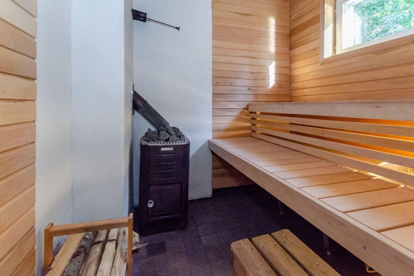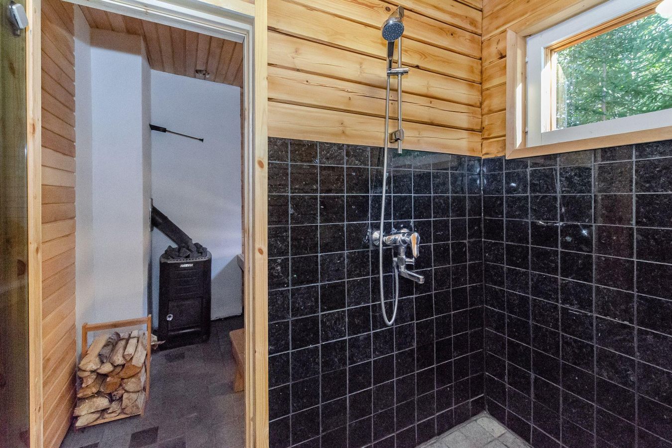 - Dressing room, bathroom/shower, wood-burning sauna