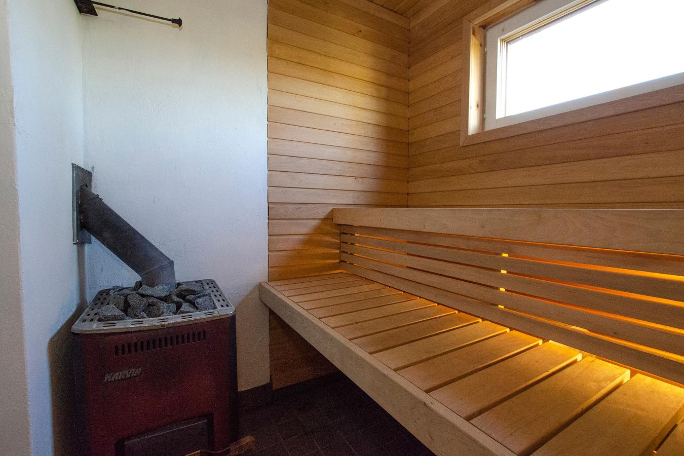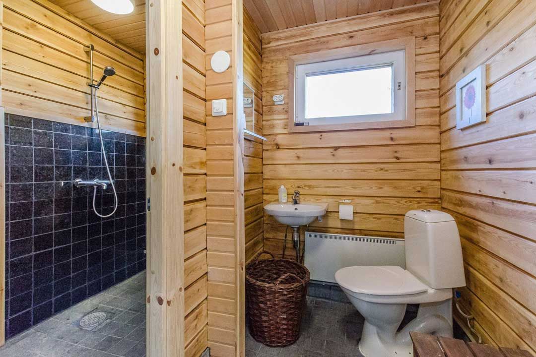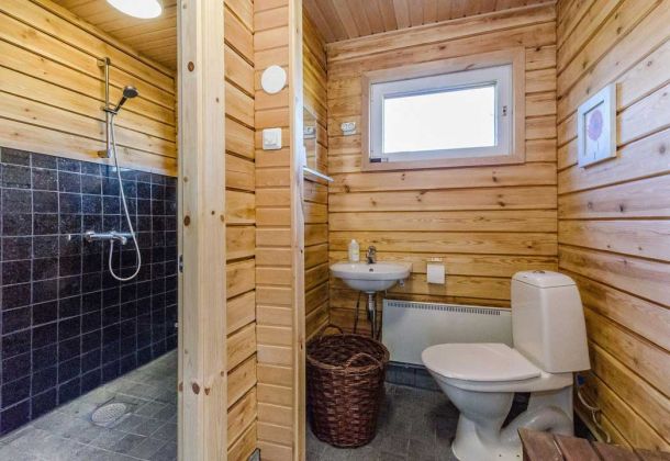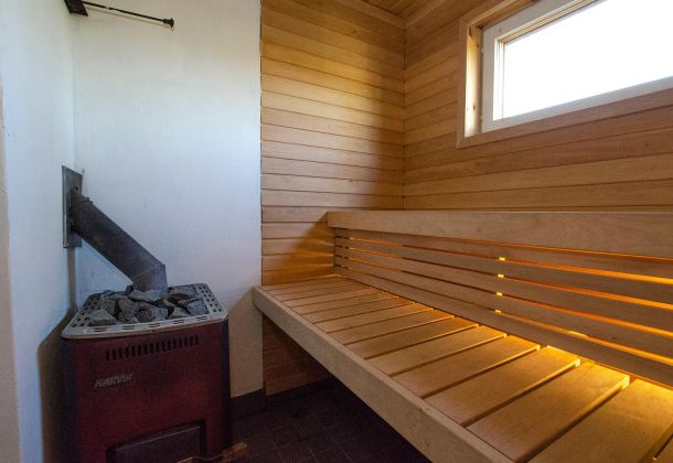 - Dressing room, bathroom/shower, wood-burning sauna