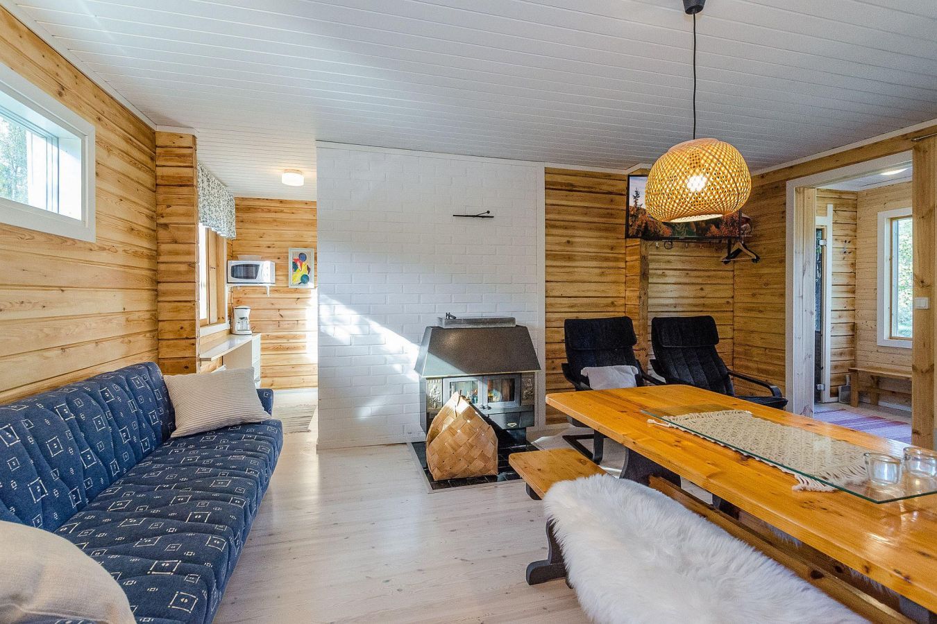 Situated on a hilltop at the Kärenjärvi lake’s island landscape. Enjoy the Northern Lights and bright summer nights from the glazed terrace.