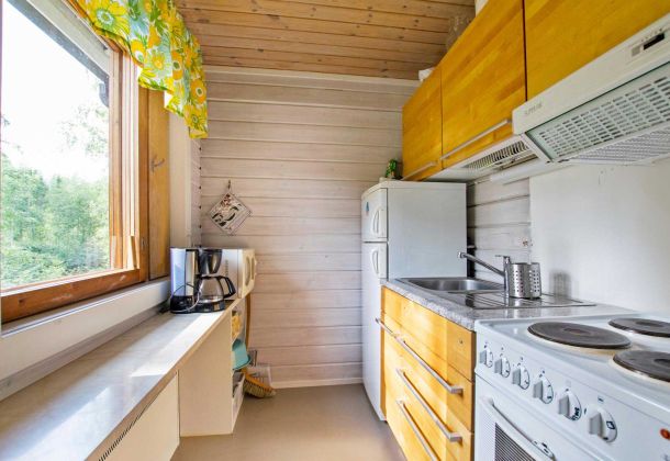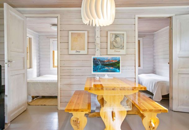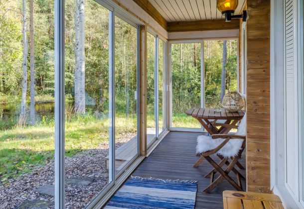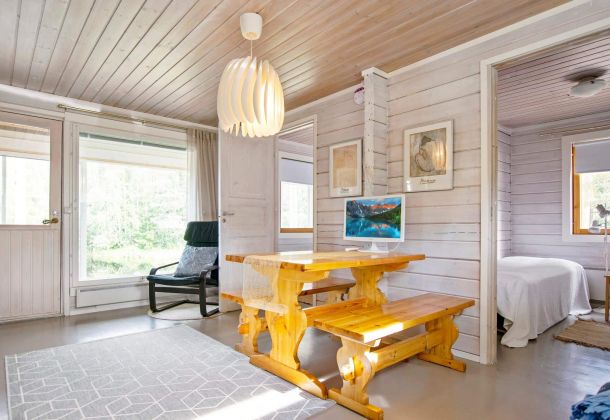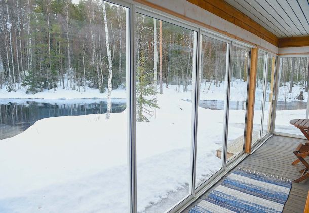 Located upstream of Kärenkoski, by the rushing rapids. Enjoy the Northern Lights and bright summer nights from the glazed terrace.