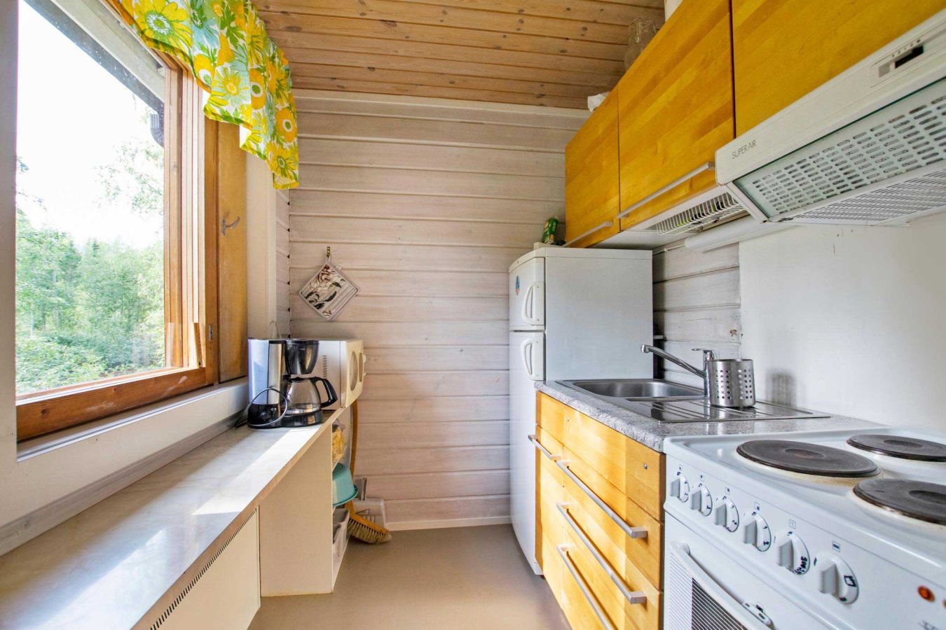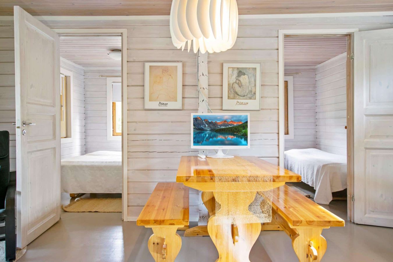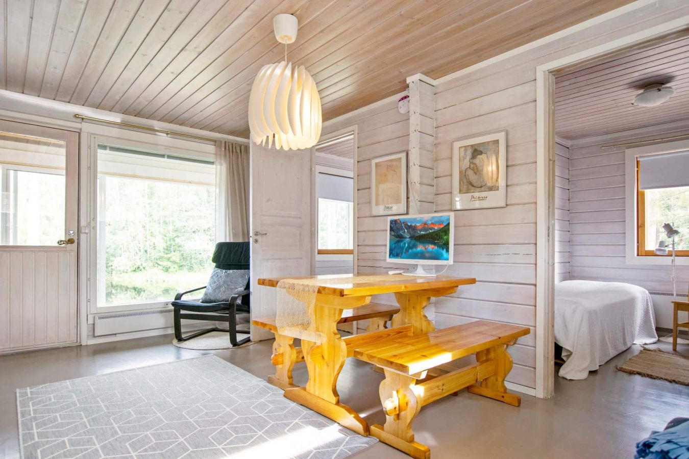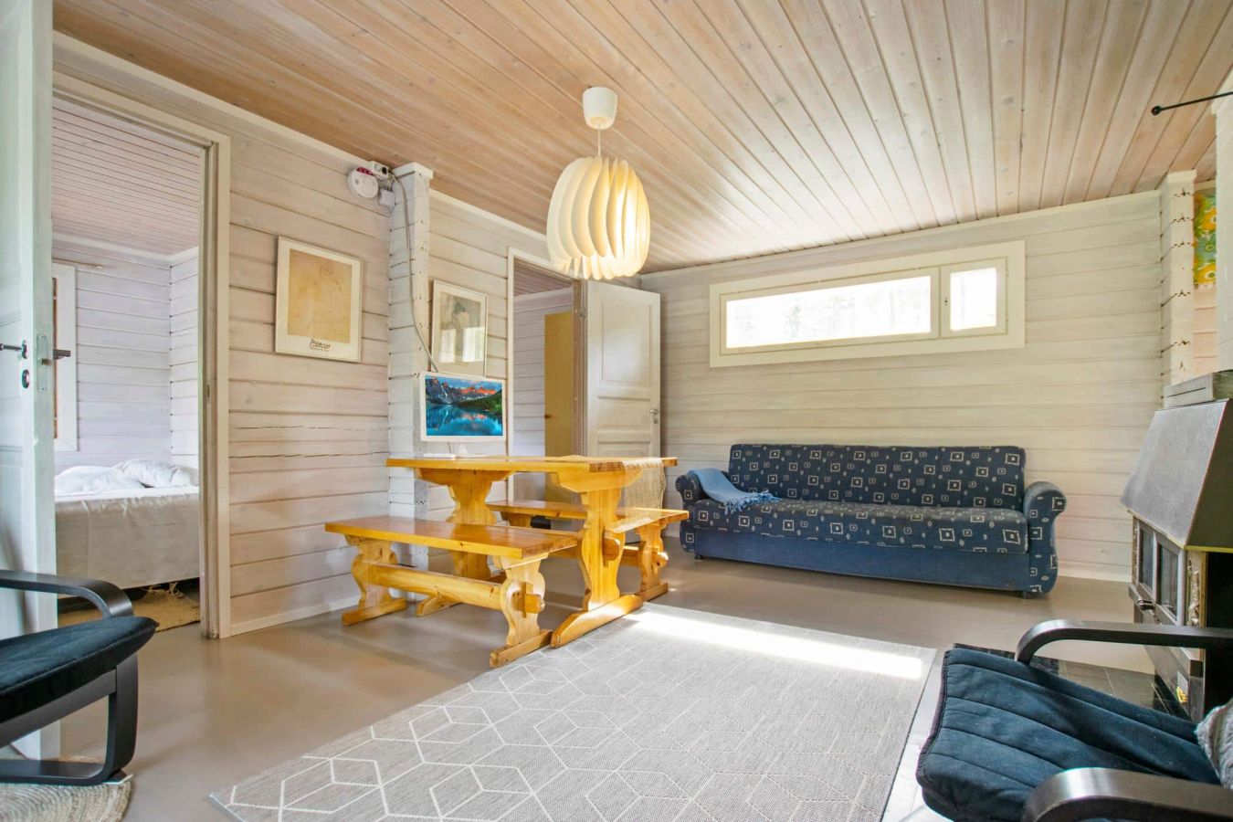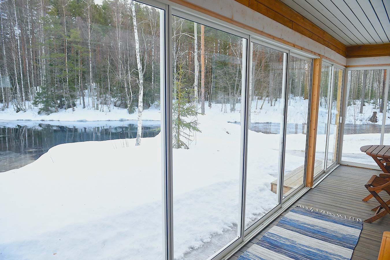 Located upstream of Kärenkoski, by the rushing rapids. Enjoy the Northern Lights and bright summer nights from the glazed terrace.
